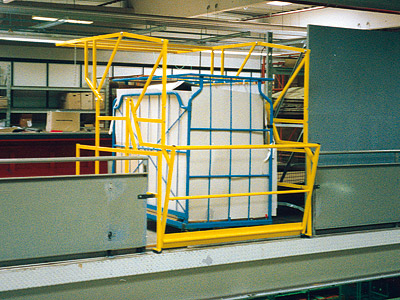 Ecluse renforcée permettant de retenir simultanément et indépendamment un chariot à mâts, des palettes lourdes glissant sur les fourches, des colis de masse élevée pouvant se déplacer au freinage du chariot.